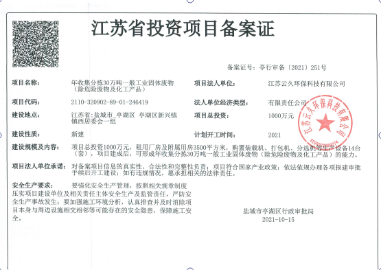 公司名稱:江蘇云久環(huán)保科技有限公司 經(jīng)營方式: